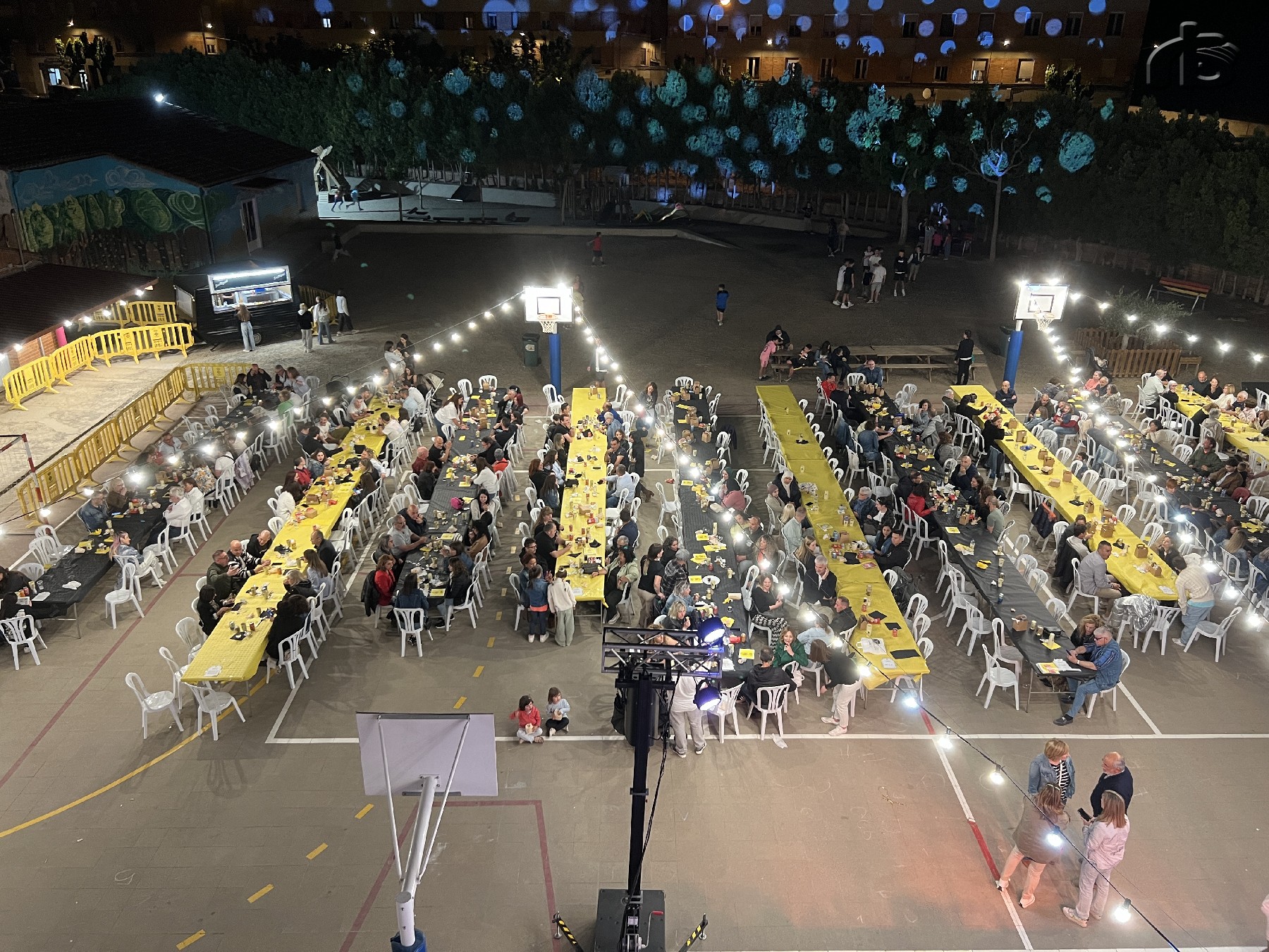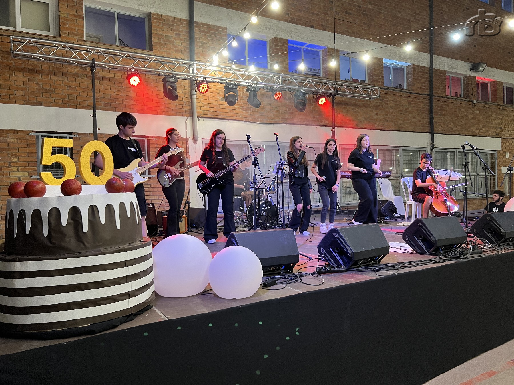 La festa d'aniversari va seguir amb una actuació musical i un sopar popular al pati del centre, que va servir com a retrobament de membres de la comunitat educativa actual amb antics professors, alumnes i pares.