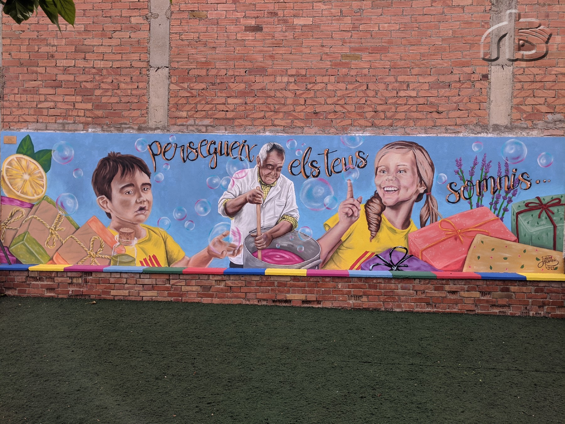 El mural compta amb una placa commemorativa i és obra de l'artista Jonatan Arrarás, que també ha realitzat obres en altres centres educatius com l'escola Gaspar de Portolà.
