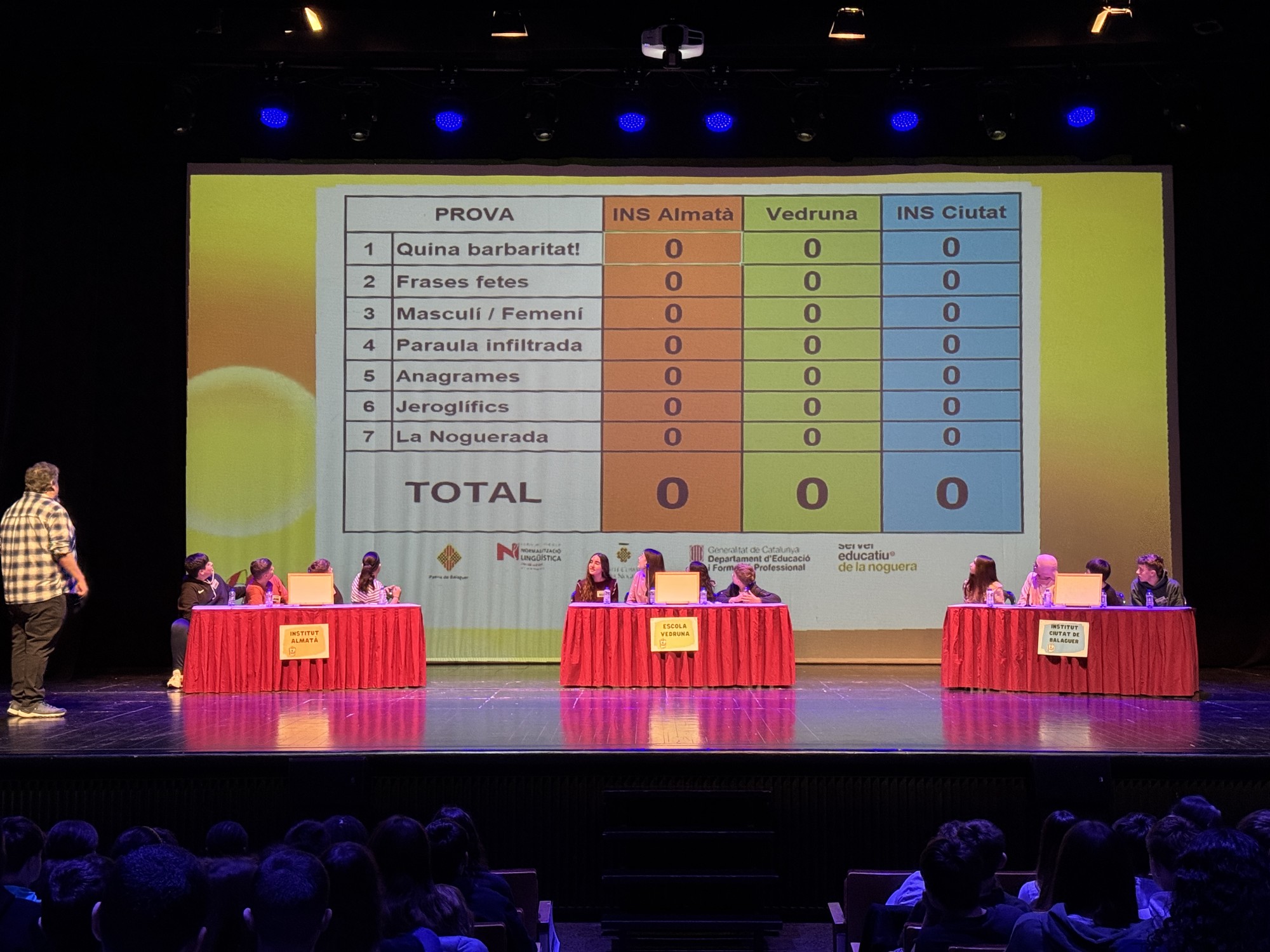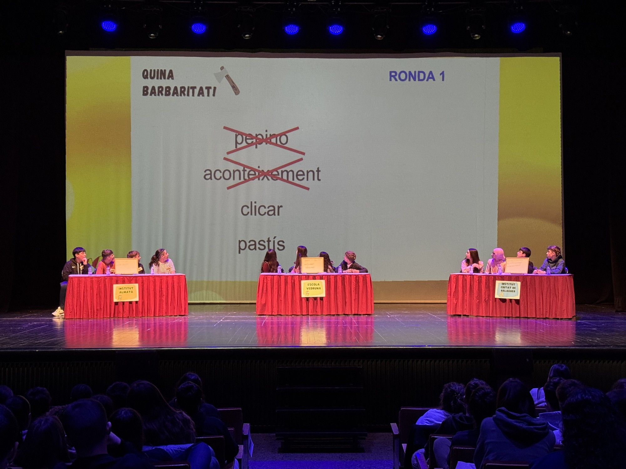 En aquesta edició hi han participat 12 alumnes representants de tres instituts de Balaguer, Almatà, Ciutat de Balaguer i Vedruna Balaguer, que han competit sobre l’escenari en diverses proves lingüístiques. Al teatre també s’hi han aplegat 280 alumnes de 2n d’ESO com a públic, juntament amb el professorat acompanyant, que han animat els equips participants. Finalment el centre educatiu que s’ha endut el premi ha estat Vedruna Balaguer, seguit de l’Institut Ciutat de Balaguer i l’Institut Almatà.