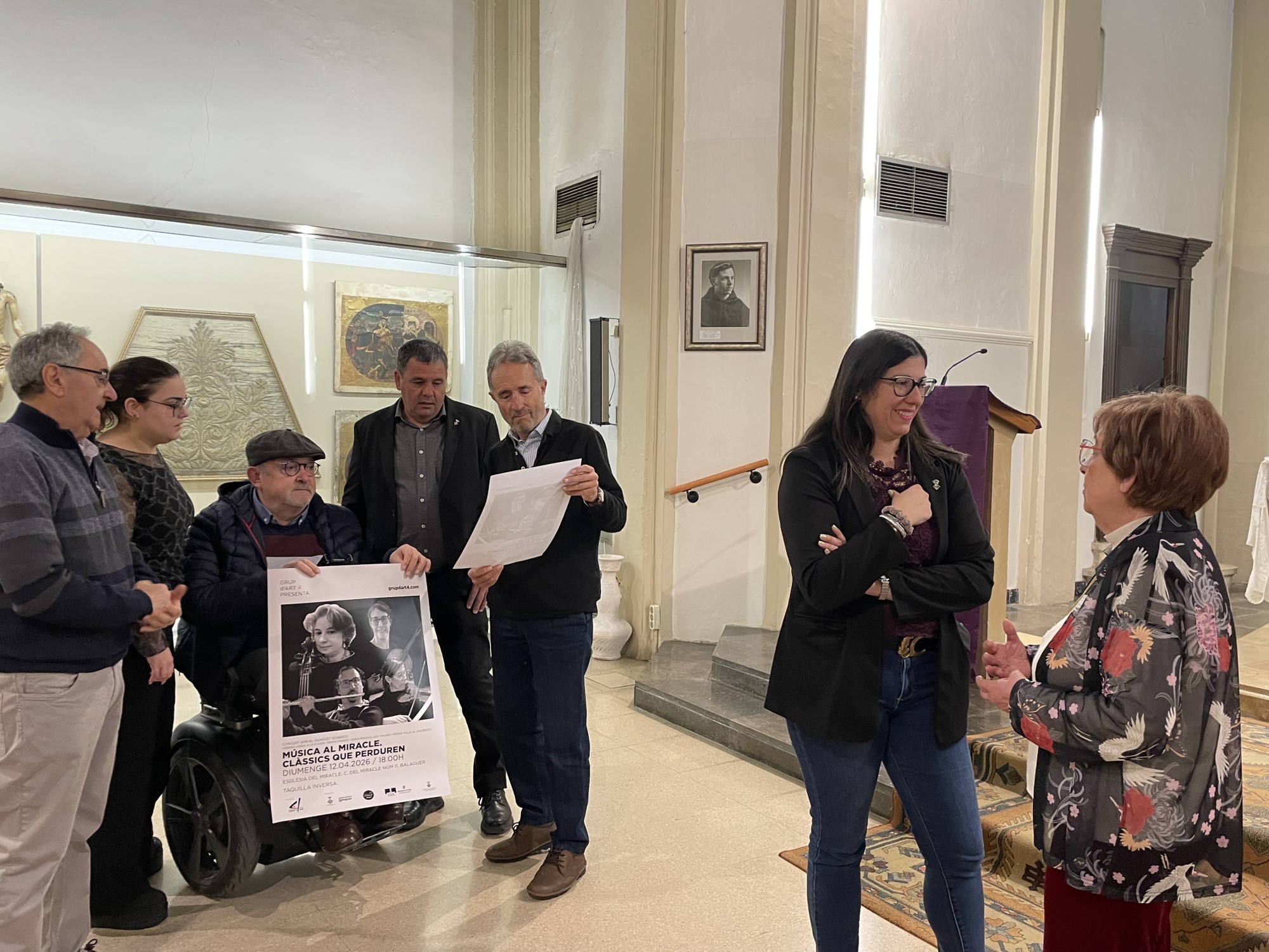 Per la seva banda, la paera en cap de Balaguer, Lorena González, ha destacat l'important paper de l'Associació Grup d'Art4 en la dinamització cultural de la ciutat. “Estem molt agraïts perquè, dins de la seva programació anual, inclouen activitats com aquest concert al Miracle, que ens permeten gaudir de músics i artistes locals. Tot i que el quartet Scherzo no és un grup nou, és fonamental donar-los visibilitat i poder-los gaudir a Balaguer”, ha assenyalat. González també ha subratllat que fer el concert a l’Església del Miracle és una “aposta encertada”, ja que “permet redescobrir aquest espai i valorar el nostre patrimoni, alhora que ofereix una nova oportunitat per a actes culturals a la ciutat”.