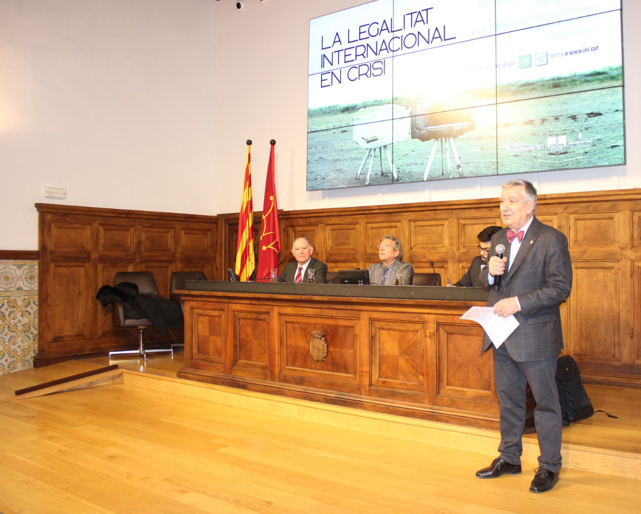 L’Institut d’Estudis Ilerdencs ha engegat avui el cicle ‘La legalitat internacional en crisi’, amb què vol analitzar si l’imperialisme de Trump o conflictes com els de Gaza, Veneçuela o Groenlàndia posen en perill el dret internacional. El catedràtic Romualdo Bermejo i el professor Milton José Meza han participat en la primera de les dues jornades d’aquest cicle, organitzat per la Secció de Dret i Economia de l’IEI. El director de l’IEI, Andreu Vàzquez, ha assistit a la sessió, que s’ha fet a l’Aula Magna.