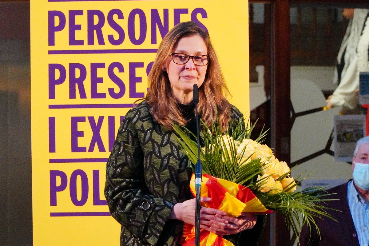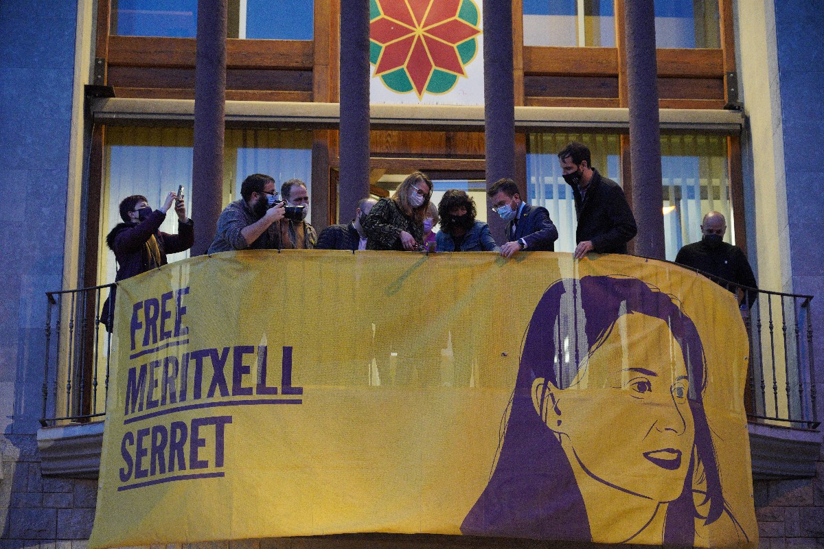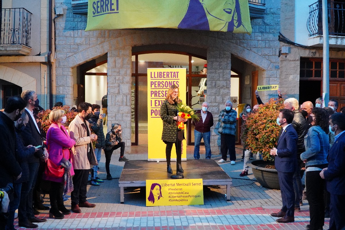 Serret, molt emocionada, ha adreçat unes paraules a tots els assistents en que ha expressat l'alegria de tornar a casa hi ha agraït totes les mostres de suport. Ha explicat que té ganes de posar-se a treballar al Parlament i també ha tingut un record pels que estan a l'exili i a la presó ''injustament''. Després del discurs, serret ha pujat al balcó de l'ajuntament on ha despenjat la pancarta que durant els últims anys ha demanat la seva llibertat.