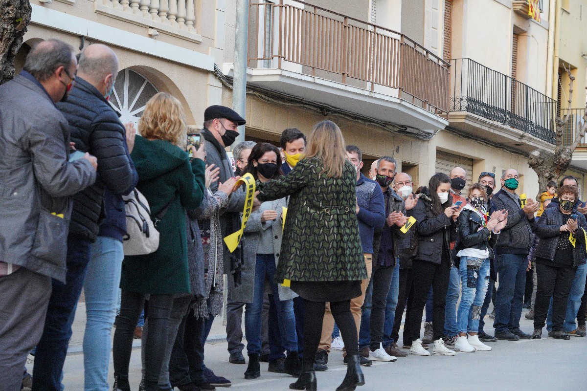 En la seva arribada, Serret ha fet un recorregut pel carrer Major del municipi enmig d'un passadís i aplaudiments de la gent hi ha anat saludant a tothom, amb algunes abraçades, fins arribar a casa dels seus pares, just al costat de l'ajuntament.