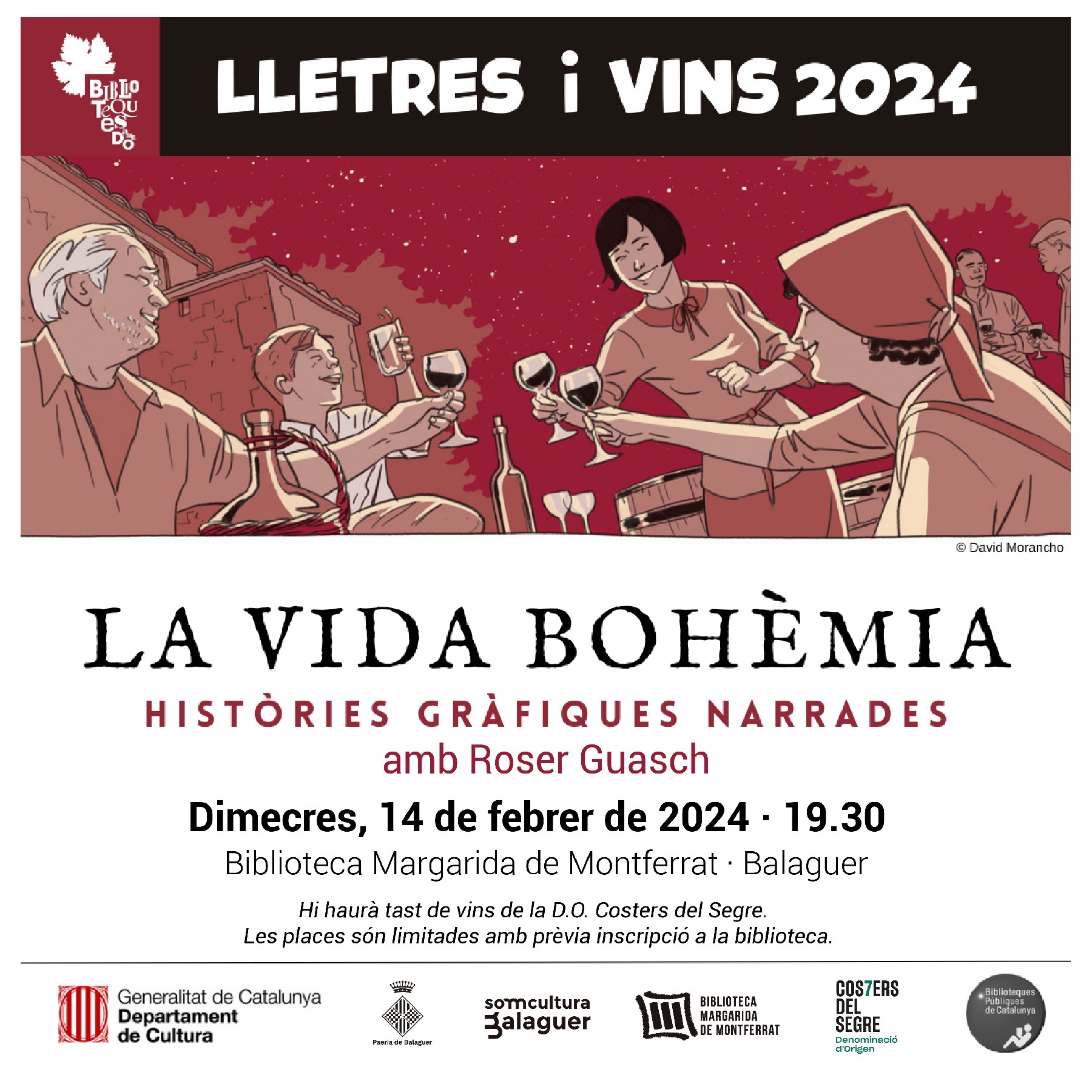- Dimecres 14 de febrer a 2/4 de 8 del vespre tindrà lloc l'espectacle "La vida bohèmia. Històries gràfiques narrades". Lectura dramatitzada d'un còmic? Per què no! Tres històries suggeridores, intimistes i elegants que formen part de Vinòmics es presenten sobre la pantalla acompanyades de la veu i interpretació de Roser Guasch.