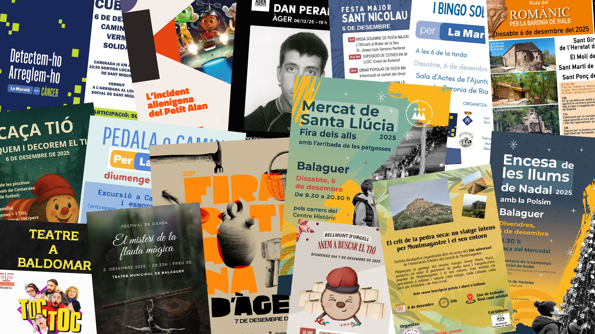 A Balaguer arriba l’encesa dels llums de Nadal i de la Fira Mercat de Santa Llúcia. A comarca trobareu actes per la Marató i les primeres propostes nadalenques. També la Fira d’Àger i la ruta del romànic de la Baronia
