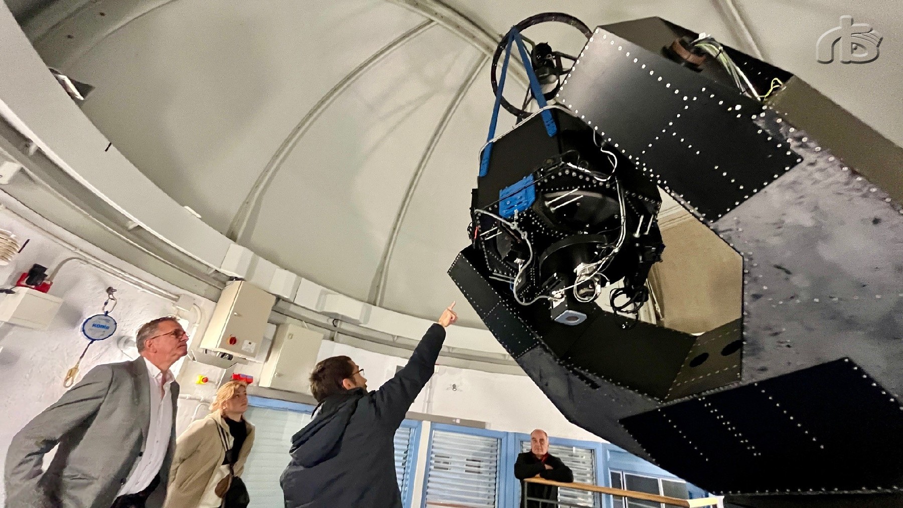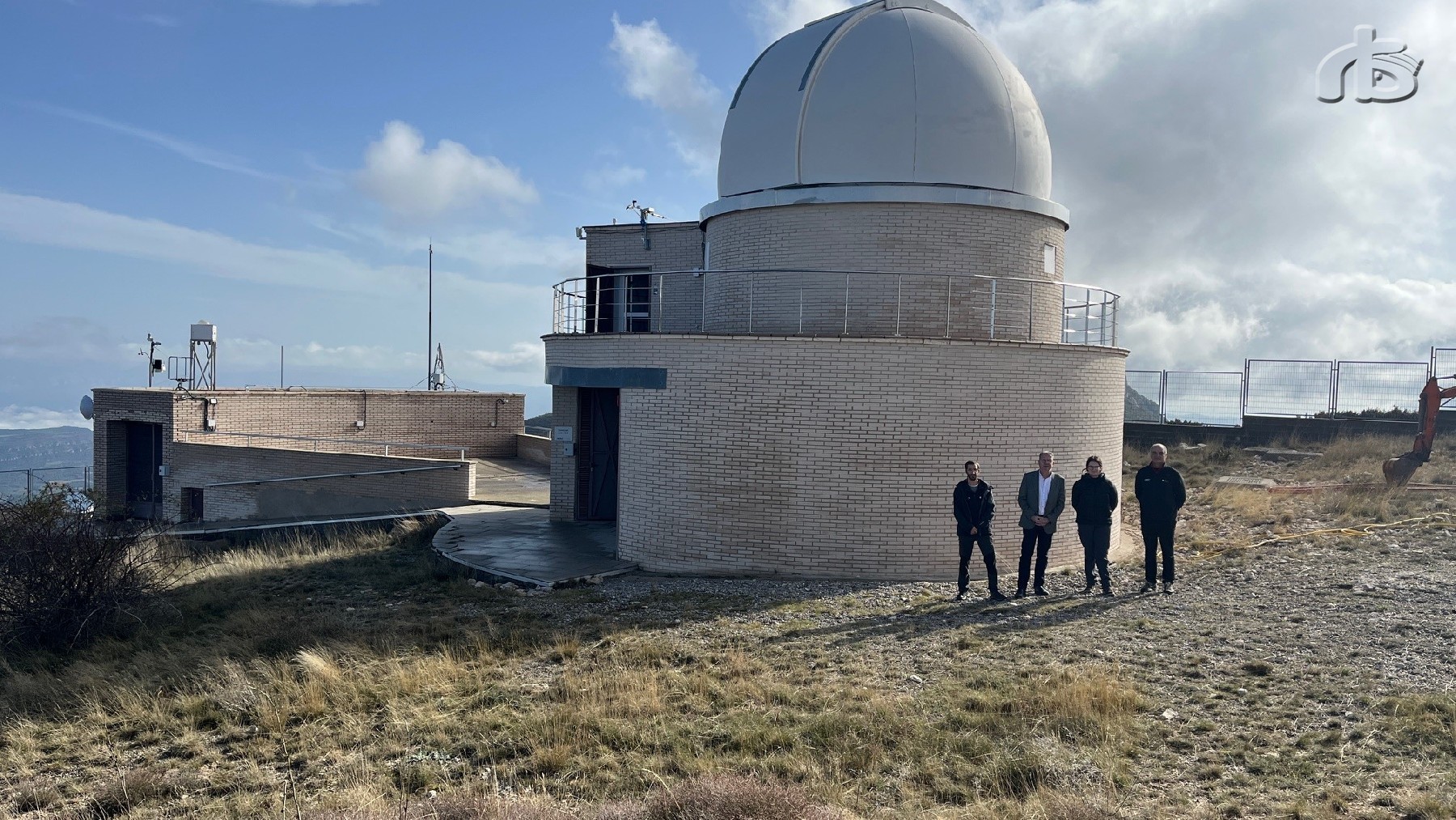 La visita ha començat a l'Observatori, ubicat a 1150 metres d'alçada al terme municipal de Sant Esteve de la Sarga. L'equipament està gestionat per l'Institut d'Estudis Espacials de Catalunya, amb el telescopi Joan Oró com a principal eina de referència. A més, segons ha explicat Kike Herrero, el complex acull un sismògraf, una estació de qualitat ambiental i un punt de control de focs forestals, tots els equips controlats de forma remota, així com el punt de recepció de dades dels nanosatèl·lits que Catalunya està posant en òrbita.