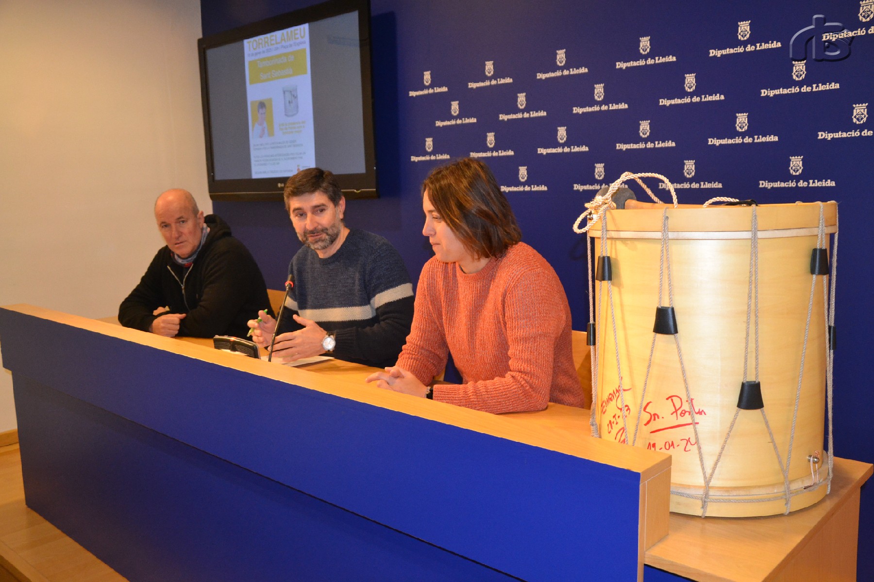 El diputat de Salut i Esports, Òscar Martínez; l'alcalde de Torrelameu, Carles Comes, i la regidora, Marta Rovira, han presentat aquest dimecres en roda de premsa la Tamborinada de Sant Sebastià que tindrà lloc aquest dissabte, 18 de gener de 2025, a les 20.00 hores, com a acte central de la Festa Major del municipi.