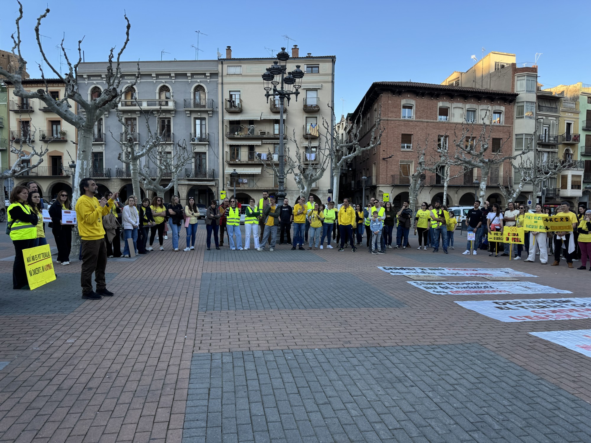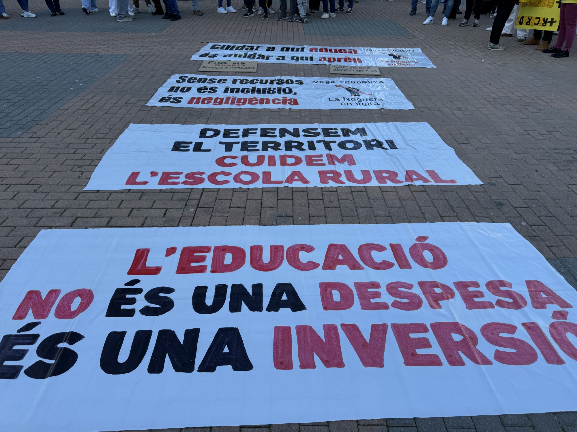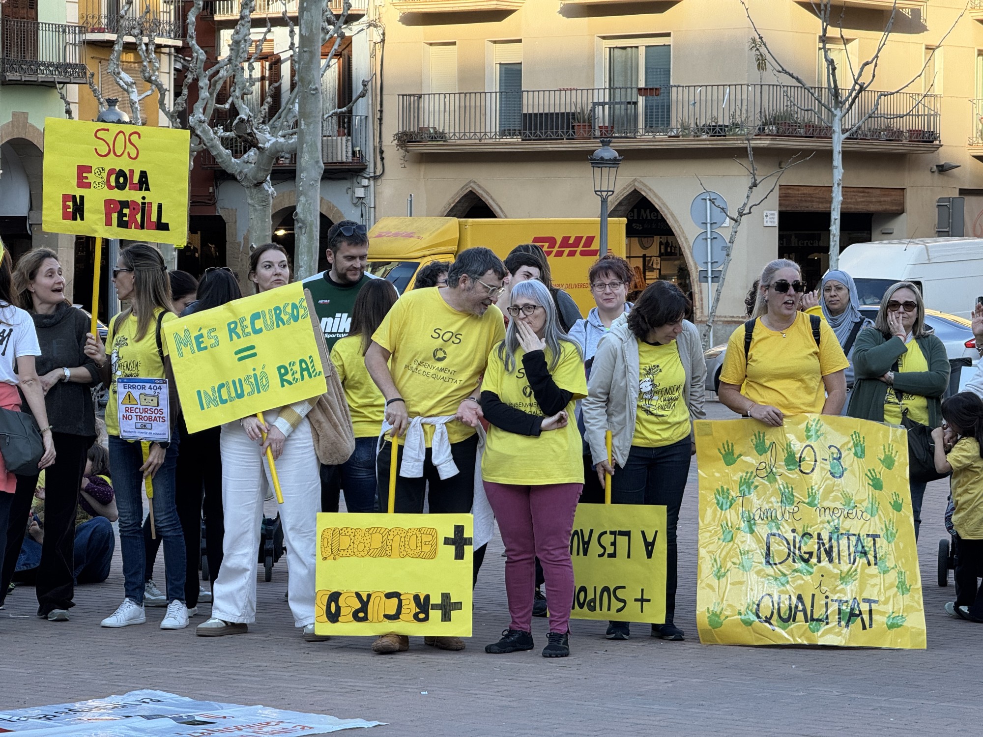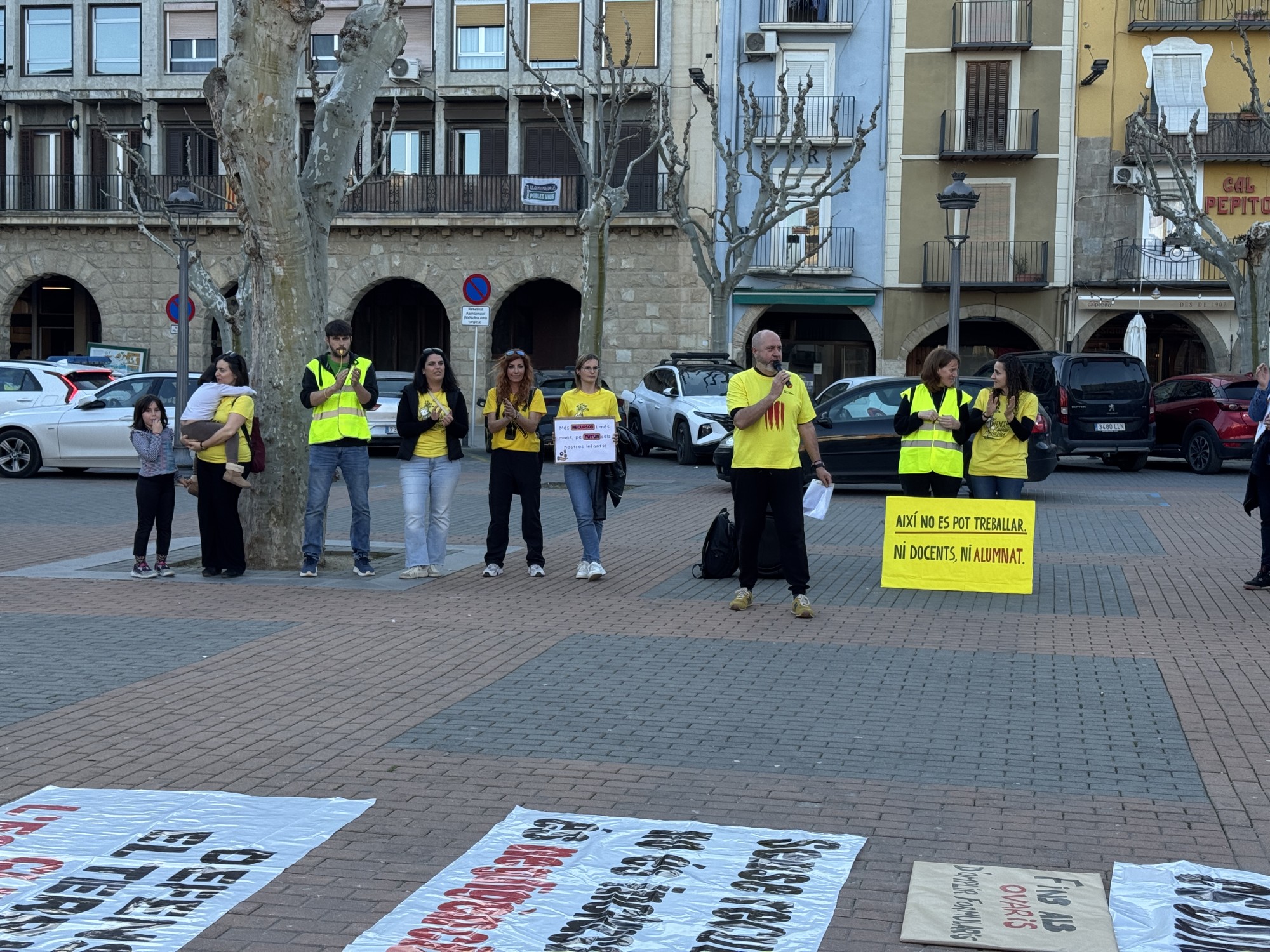 Durant la concentració, els participants han recordat les principals demandes del col·lectiu, com la reducció de ràtios, la disminució de la burocràcia als centres, més recursos per a l’escola inclusiva i una millora de les condicions salarials. També s’ha recordat la situació de l’escola Gaspar de Portolà, davant la possible pèrdua de la segona línia d’I3.