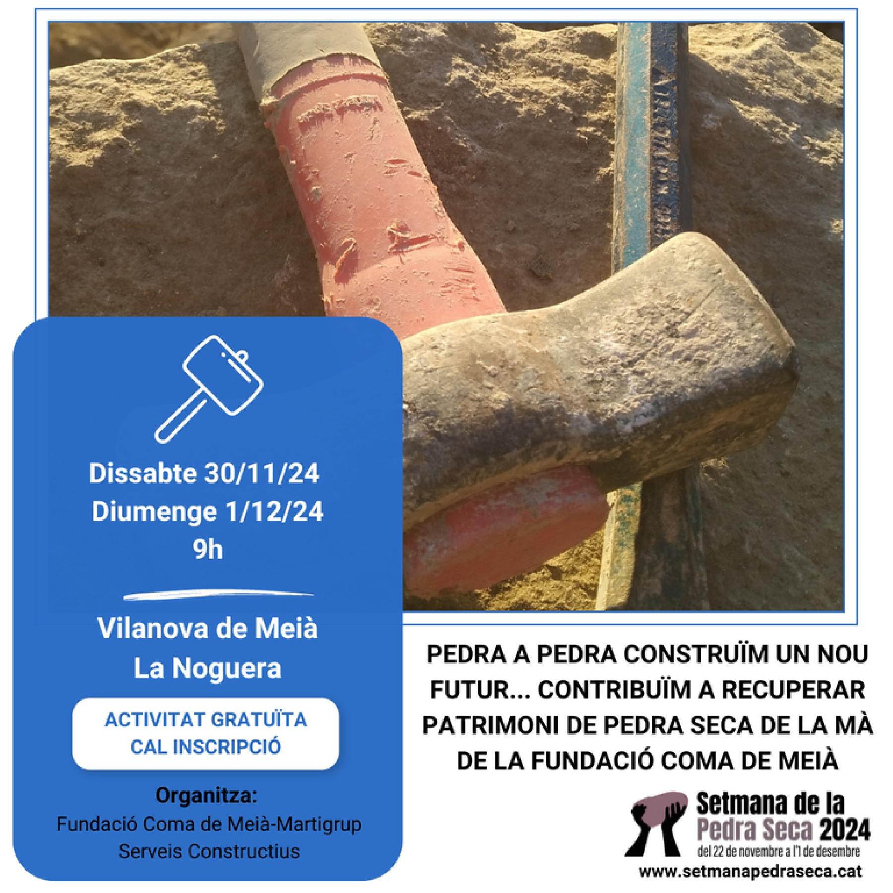 Del 22 de novembre a l'1 de desembre, Vilanova de Meià acollirà la Setmana de la Pedra Seca, una iniciativa que promou la recuperació del patrimoni de la zona a través de la tècnica tradicional de la pedra seca. Organitzat per la Fundació Coma de Meià, aquest esdeveniment ofereix un programa divers de formació, xerrades i activitats per sensibilitzar la comunitat sobre la importància de conservar aquest element fonamental del patrimoni local.